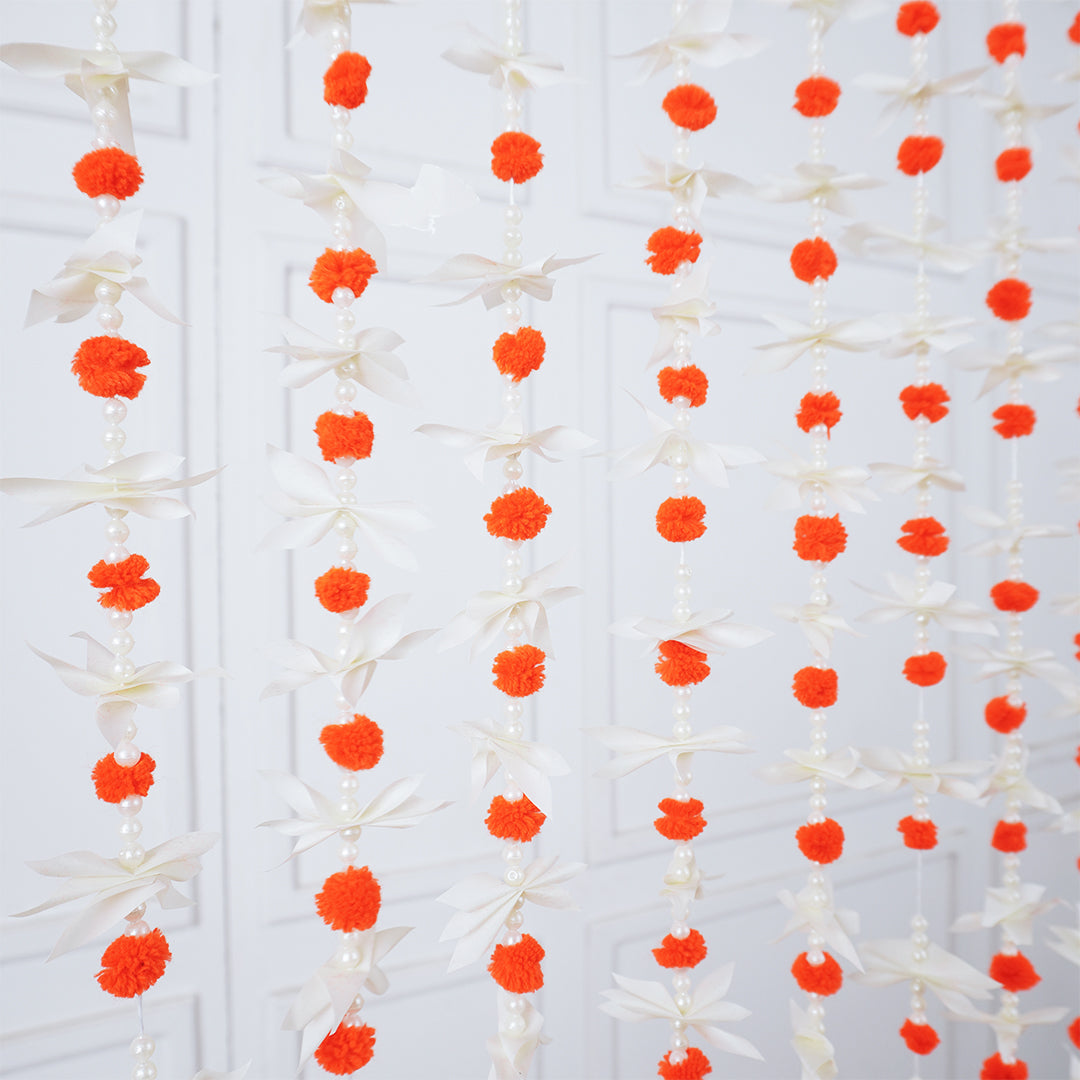 Elevate your wedding decor with 12 small pom pom garlands, perfect for traditional events. Available in 4 colors and 6 feet in length. Durable and versatile, these garlands are ideal for both indoor and outdoor use.