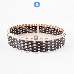 Brown & White - Round Jute Serving & Storage Tray for Home Decor