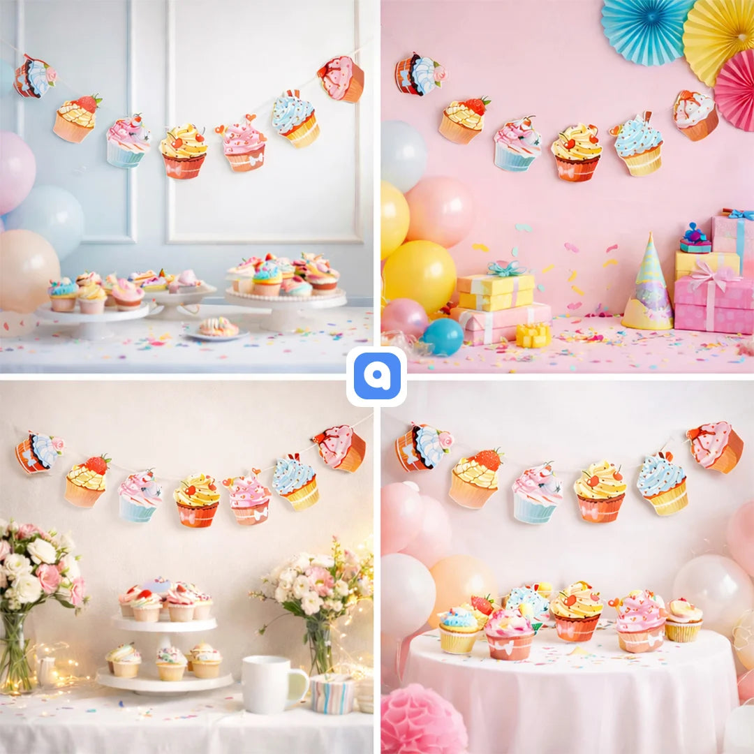 Brighten your celebrations with our charming Cup Cake Bunting. Perfect for birthdays, tea parties, and festive gatherings, this delightful decoration adds a sweet touch to any event. The vibrant cupcake designs bring playful color and whimsy to your space, whether displayed indoors or outdoors. Easy to hang and reusable for multiple occasions, it's an affordable way to create a memorable atmosphere. Ideal for themed parties, bakery displays, or home décor that celebrates all things sweet.