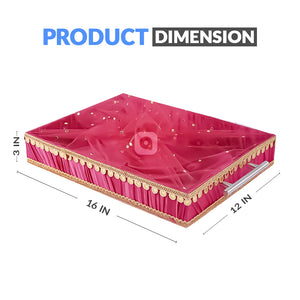 This Hot Pink Fancy Fabric Satin Tray is designed for gifting and festive use. Made with soft satin fabric and finished with clean detailing, it's suitable for placing sweets, dry fruits, or small items. The bright yellow color stands out and works well for wedding functions, religious events, or seasonal celebrations. Lightweight, reusable, and easy to handle for all your gift arrangements.