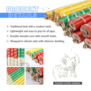 Celebrate Garba and Navratri in style with these Satin Fancy Dandiya sticks. Designed with bright satin wrapping and decorative finishes, these sticks are perfect for traditional dance performances and festive events. Lightweight and easy to hold, they make every move more graceful while adding a splash of color to your celebrations. Ideal for group performances, family gatherings, and cultural functions.
