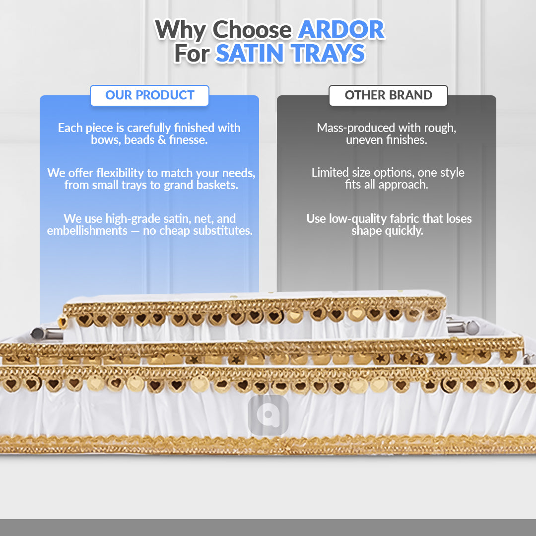 Make every gift look extra special with this beautifully crafted Satin Tray Set, designed specifically for weddings, engagements, and festive gifting. Covered in soft satin fabric with a graceful finish, these trays are perfect for presenting sweets, jewelry, return gifts, wedding favors, or traditional items in style.