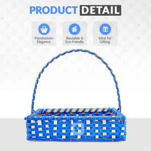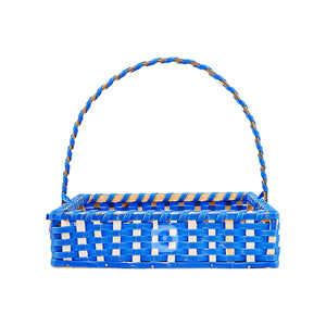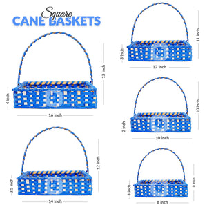 Set of 5 Blue Square Cane Baskets. Handcrafted from natural cane and lined with soft jute fabric, these versatile baskets are perfect for gifting, home organization, and decorative storage.