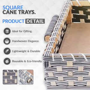 Present a gift that's both beautiful and practical with this Rectangular cane trays. Crafted from durable, natural rattan, these versatile trays are perfect for any occasion. Imagine them filled with gourmet treats, bath essentials, or delightful trinkets – a thoughtful and stylish way to show you care. The varying sizes nest perfectly for easy storage, making them a lasting addition to any home decor, whether used for serving, organizing, or simply admired for their natural charm. It’s a gift that truly keeps on giving.