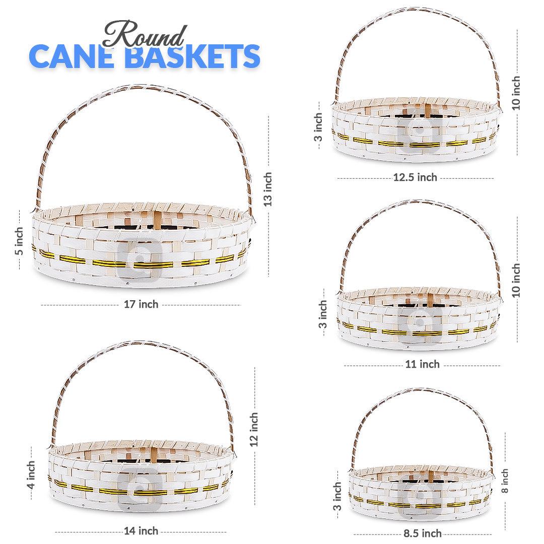 Set of 5 - Round White Cane Basket for Gifting, wedding decoration