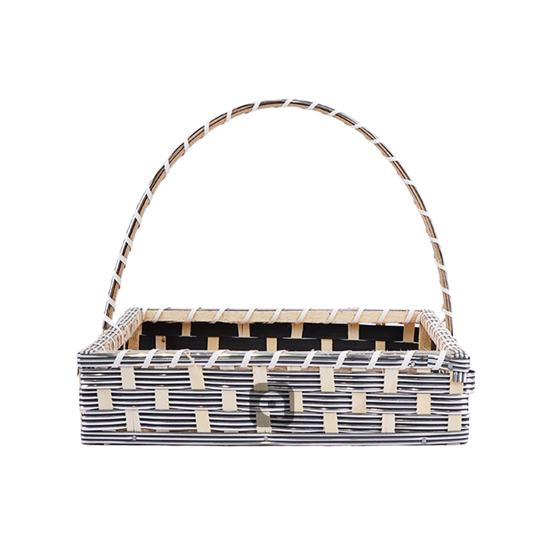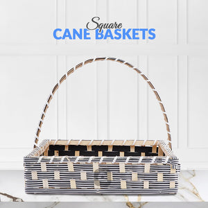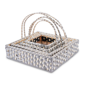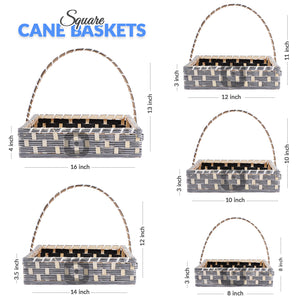 Set of 5 Silver Square Cane Baskets – Jute-Lined, Handmade Storage & Gift Baskets